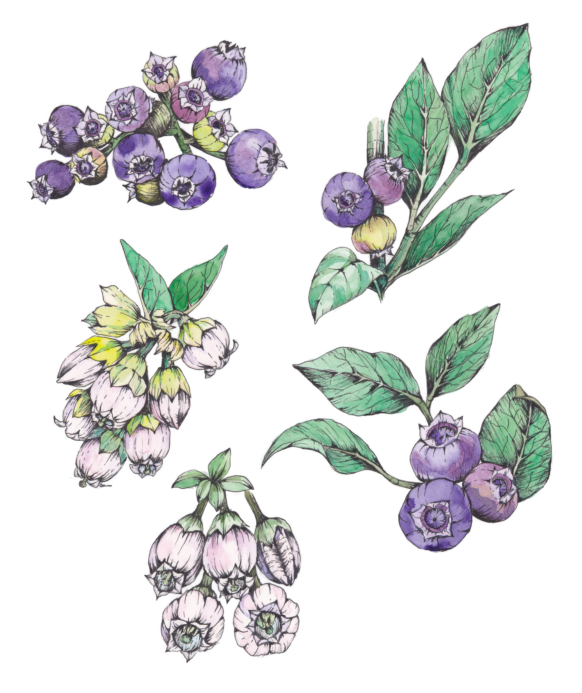 ●内容:ブルーベリーの手描き水彩イラスト(1点)