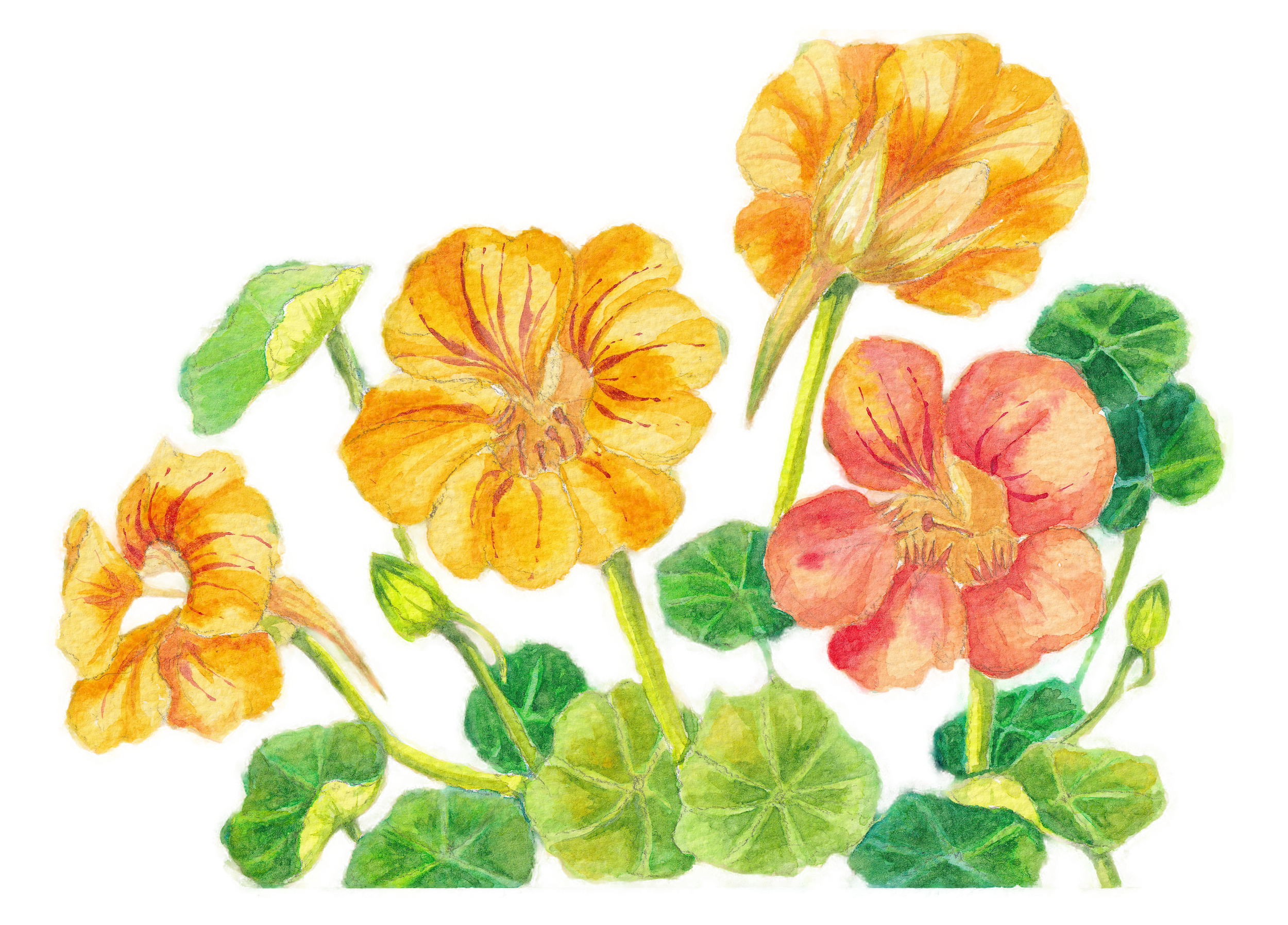 ナスタチウムの手描き水彩イラスト