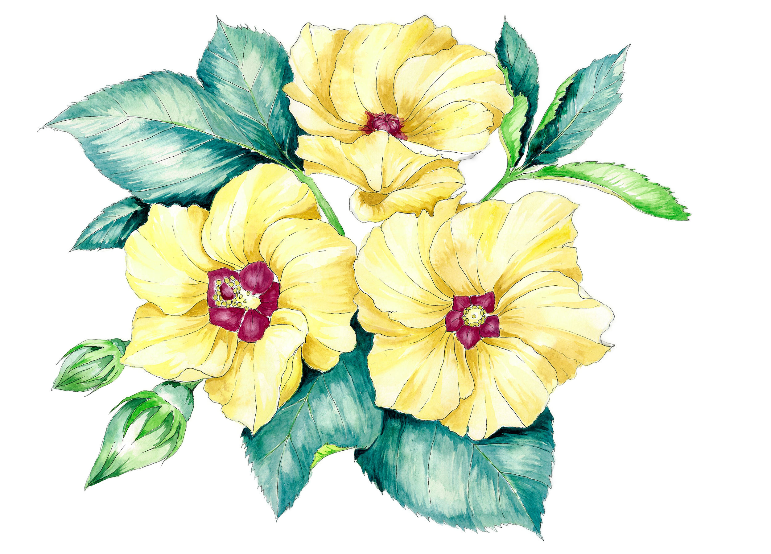 ●内容:オクラの花の手描き水彩イラスト(1点)