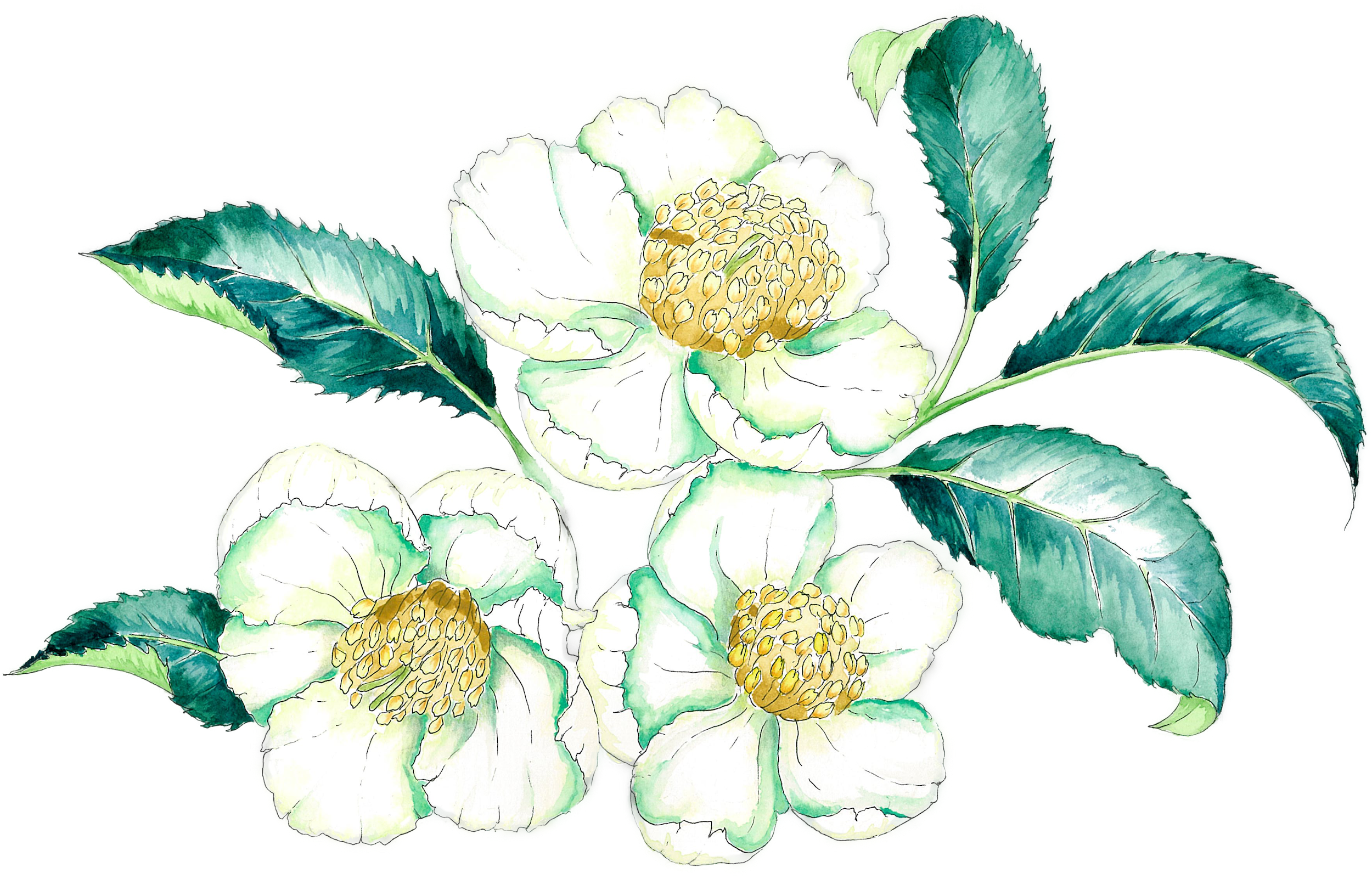 茶の花の手描き水彩イラスト